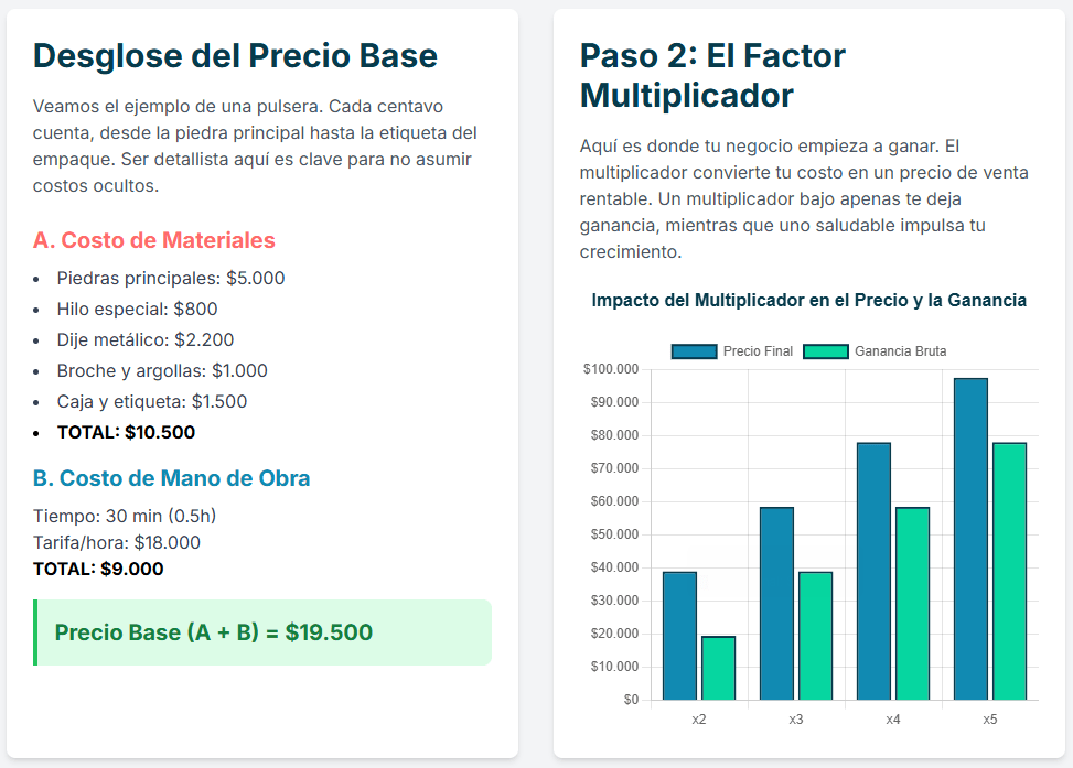 Desde que empecé con este sueño ha sido todo un tema el ponerle precio a lo que hago, he buscado en muchos lugares información que me ayude a lograr ese cometido pero como en todo, hay muchas formas de hacer las cosas. Hoy te traigo una, que para empezar puede ayudarte con tu primer intento y tiene lo necesario para que tu negocio siga creciendo. Luego ya veremos cómo podemos mejorarla con el tiempo.